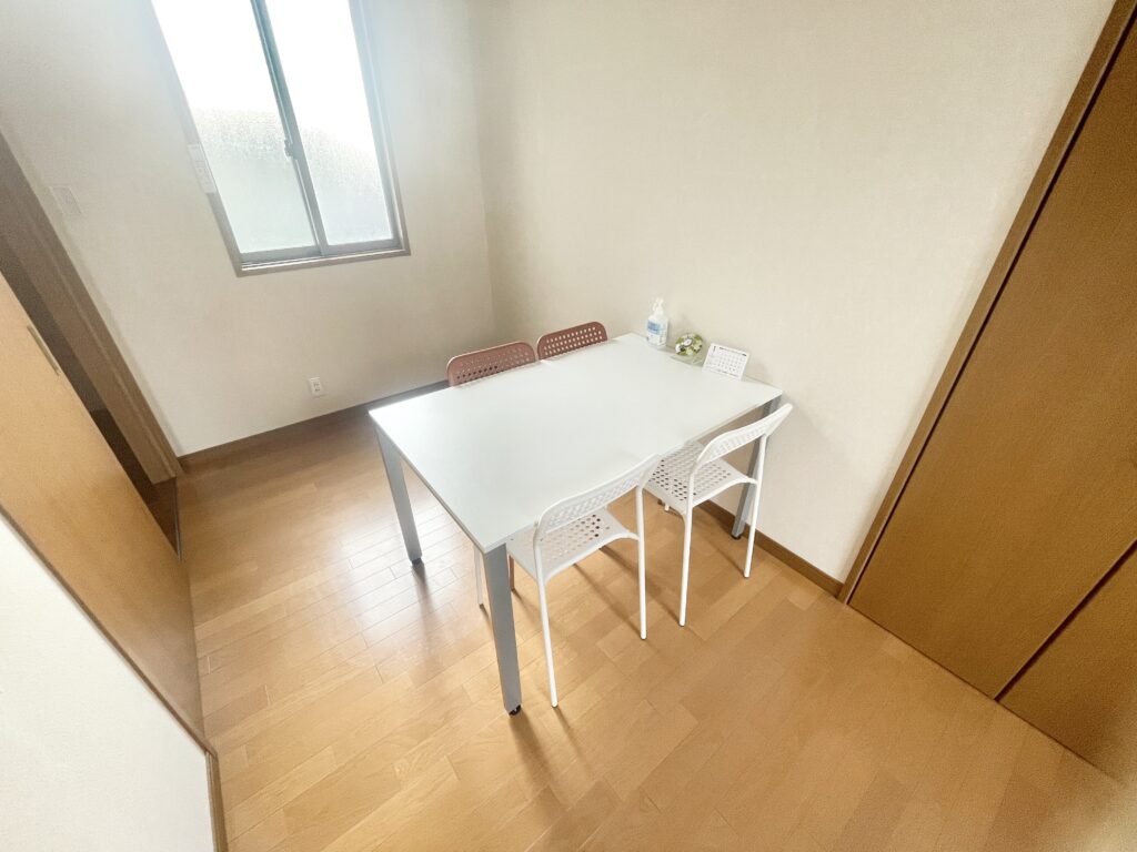HOMEブログ こんにちは🌞 わーくる∞です🌟 本日の内装紹介は、相談室です! このようなこじんまりとした相談室となっており、 このお部屋で面談等おこないます😊 これにて一旦内装紹介は終わりです👏 また次回のブログでお会いしましょう😊